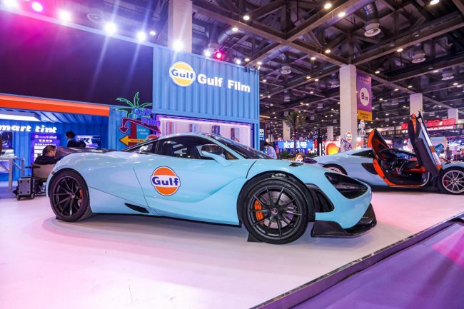 本次展会,Gulf海湾汽车膜携手全球战略合作伙伴McLaren,McLaren 720s与600LT身着海湾涂装亮相。经典的海湾橙蓝配色,承载着半个多世纪的赛道荣光,与超跑凌厉线条相得益彰,成为展馆内当之无愧的视觉焦点。